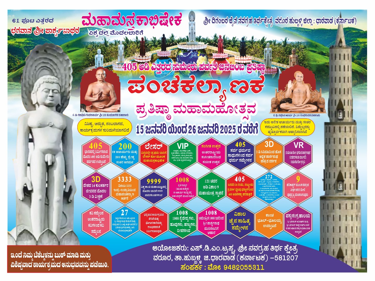 405 ಅಡಿ ಎತ್ತರದ ಸುಮೇರು ಪರ್ವತ ಜನಬಿಂಬ ಪ್ರತಿಷ್ಠಾ